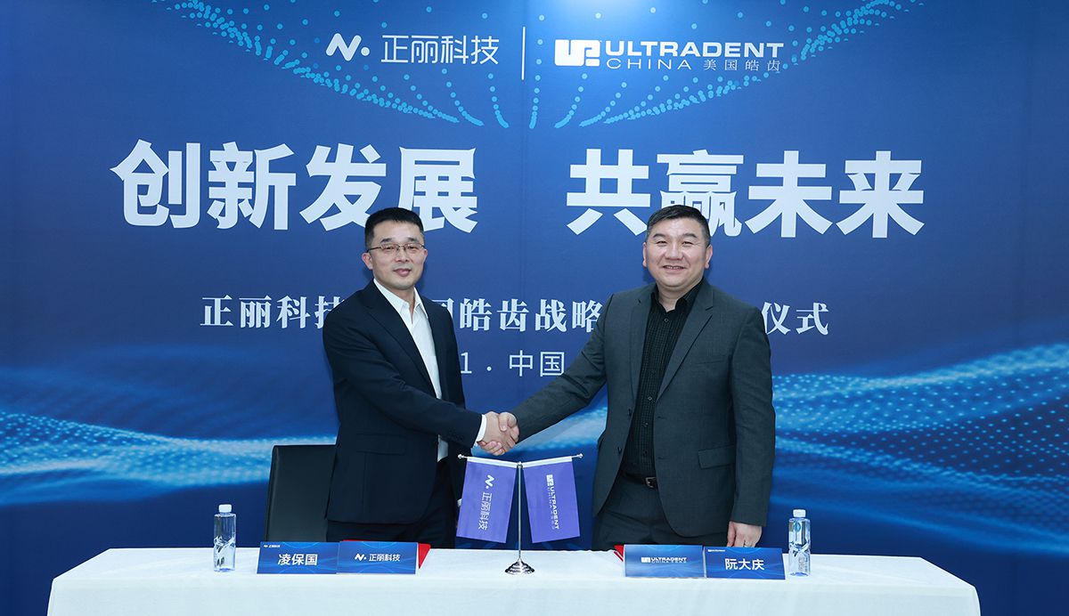 2021年11月1日,正丽科技与美国皓齿 (Ultradent Products, INC.) 在正丽科技上海总部举行战略合作签约仪式,正丽科技CEO凌保国先生、皓齿中国总经理阮大庆先生、皓齿中国市场部负责人张鹏先生等出席本次签约仪式。