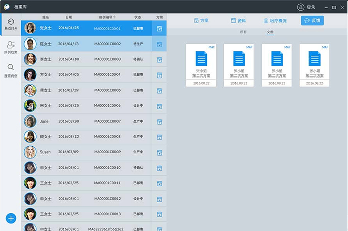 在提交和接收病例方案时,临床医生可以通过OrthoPlus平台向正丽科技提交多种类型的病例资料,以满足方案设计的需求。同时,正丽科技制作完3D方案后,也可通过此平台将方案发送给临床医生。在审阅和修改病例方案时,临床医生可打开OrthoPlus接收方案,并在此进行审阅和修改。OrthoPlus集成了病例设计过程中临床与公司的所有交互操作,极大地推进了病例进程。
