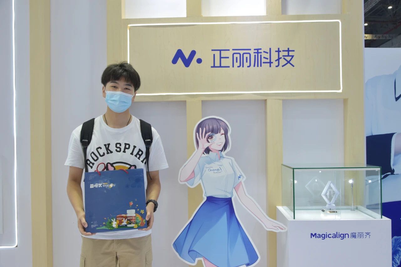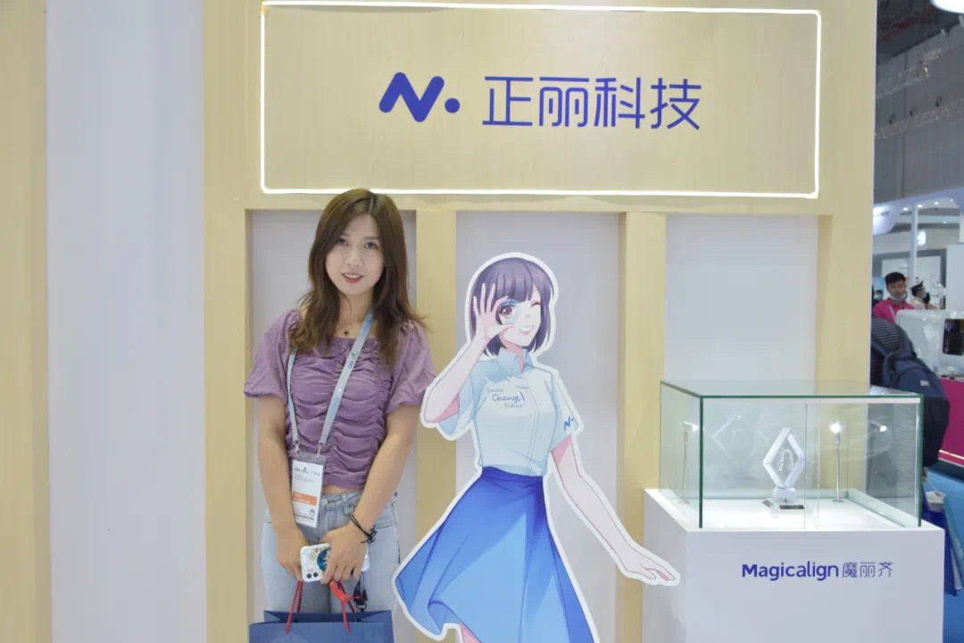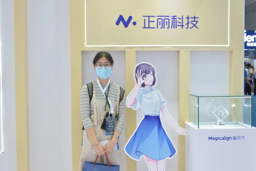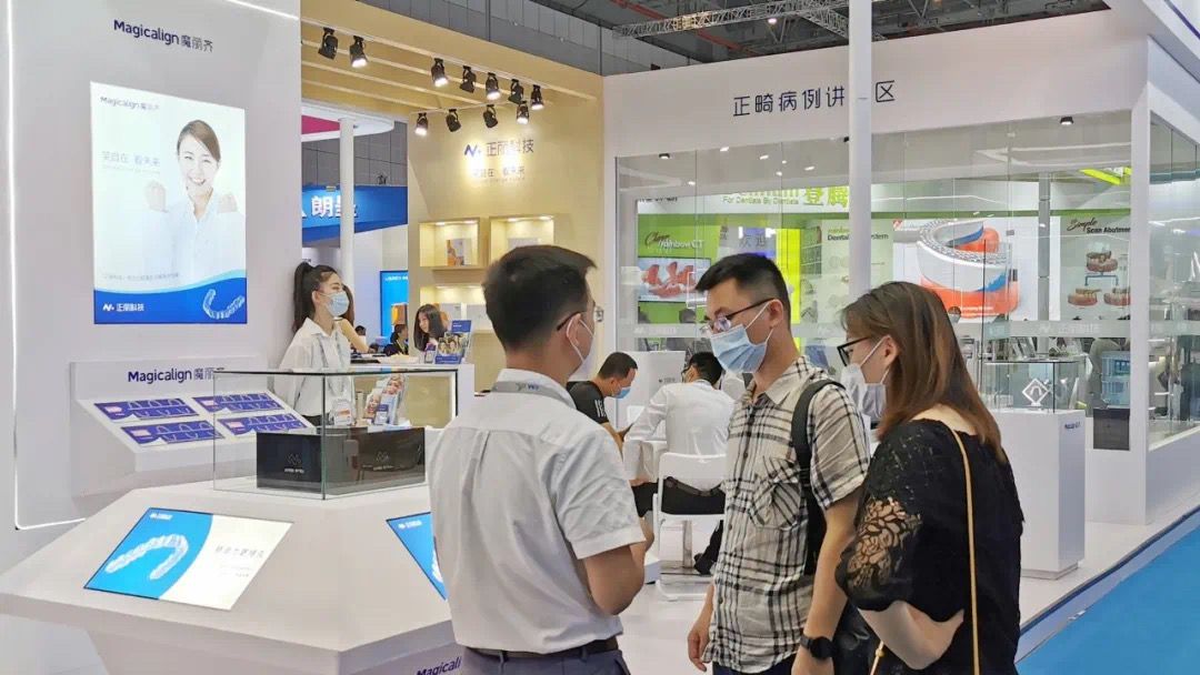 展会现场,正丽科技为大家展出了旗下两款产品——「Magicalign魔丽齐」与「Smyletec瑞速齐」(与士卓曼联合推出),同时还有其自主研发软件OrthoPlus、生物力学“牙套抗断裂测试盒”、主要适应症、经典病例等。