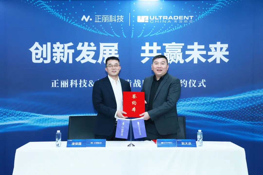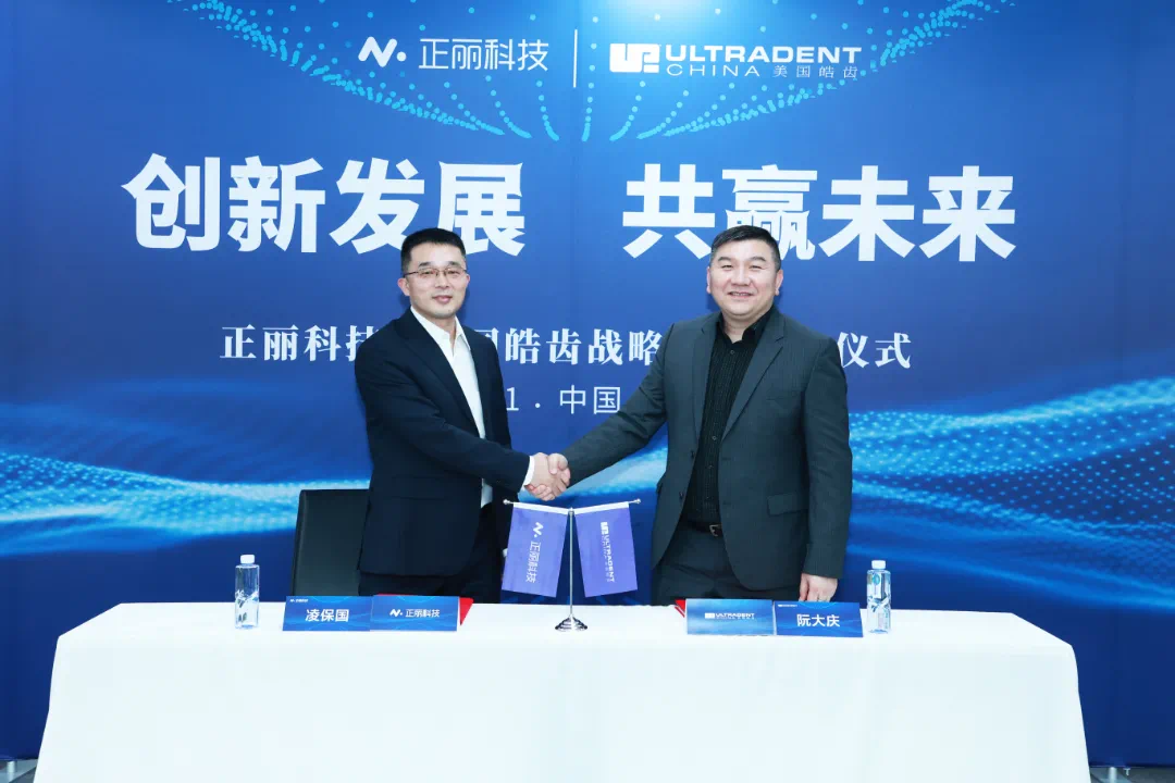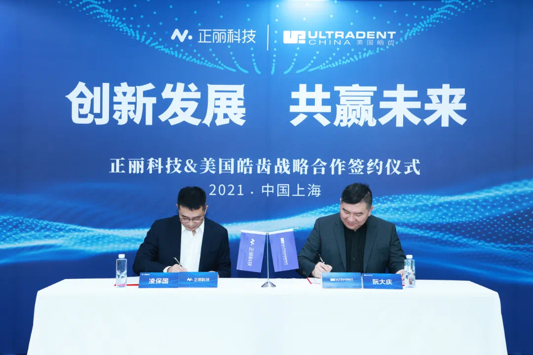 2021年11月1日,正丽科技与美国皓齿 (Ultradent Products, INC.) 在正丽科技上海总部举行战略合作签约仪式,正丽科技CEO凌保国先生、皓齿中国总经理阮大庆先生、皓齿中国市场部负责人张鹏先生等出席本次签约仪式。