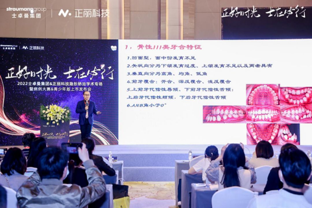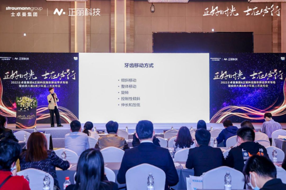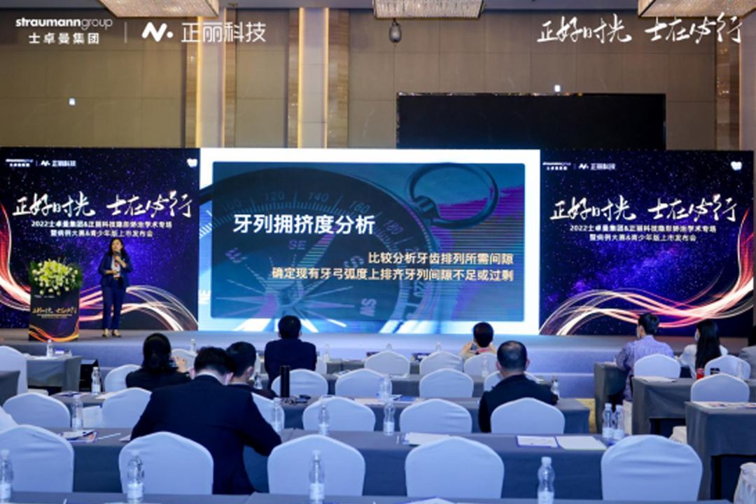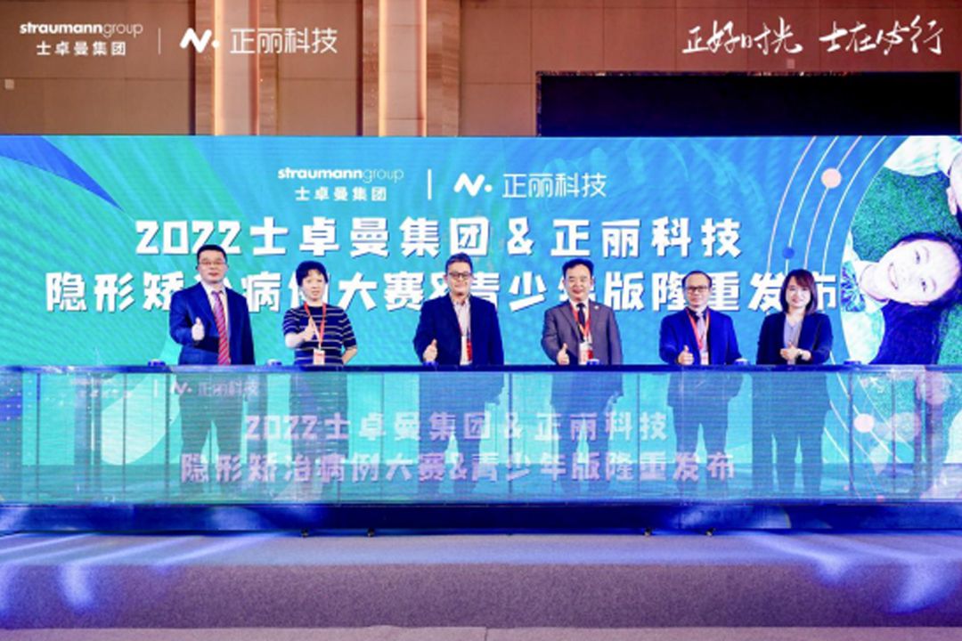 在会议现场各位嘉宾及口腔同仁的共同见证下,正丽科技与士卓曼集团共同发布了新款青少年版产品及隐形矫治病例大赛。