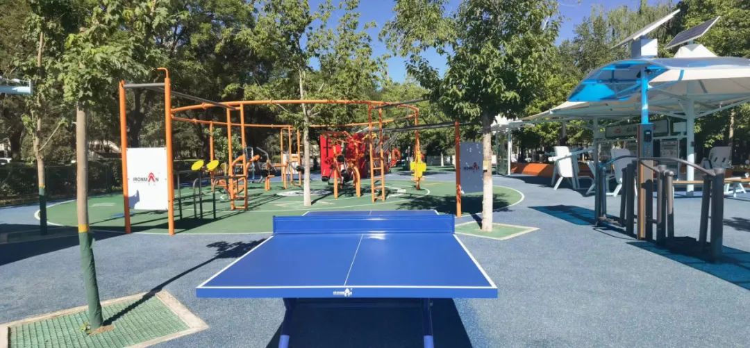 近2000平方米的园区内铺设了专业的彩色塑胶地面,分布着室外健身智能驿站、青少年体能训练、趣味体测、智能体测、互动足球区、乒乓球区、儿童游乐区、棋牌区8大功能区。整个园区融入了奥运五环色彩元素,集现代科技、智慧健身、绿色生态、场地特色于一体,为健身群众创造出智能便利的运动健身空间,将进一步激发科学健身热情,增添智能健身乐趣,满足健身群众对于美好生活的追求和向往。