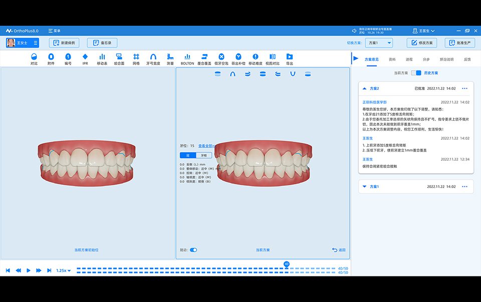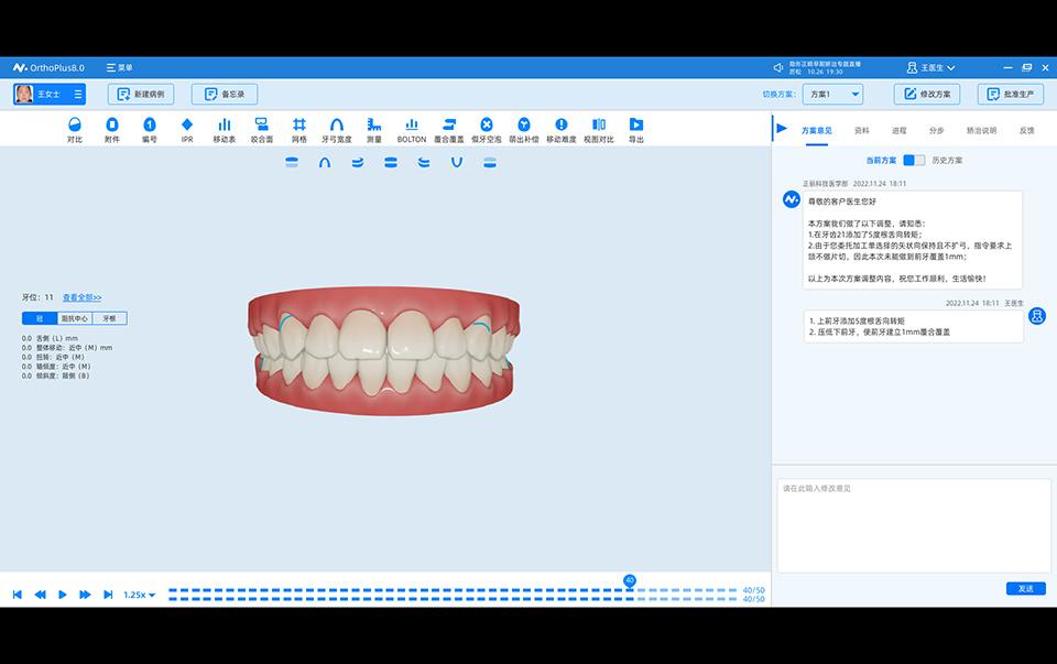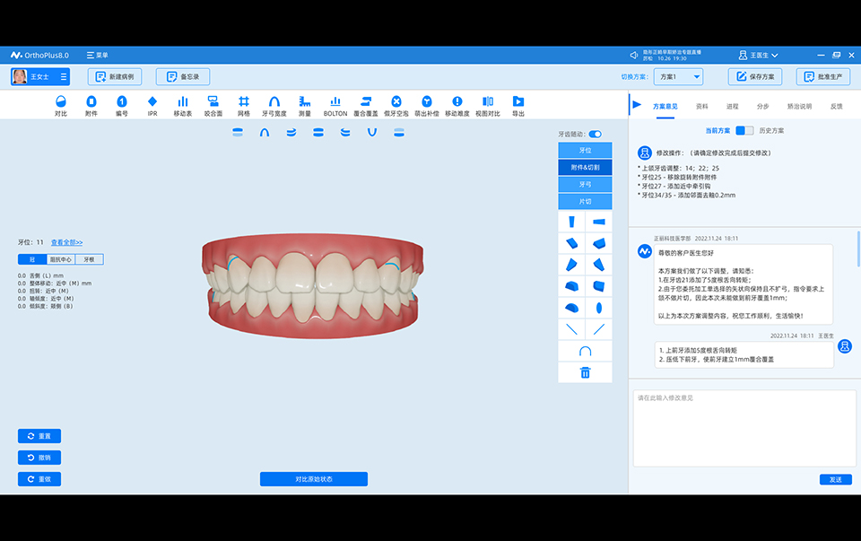 OrthoPlus 软件是正丽科技为临床医生研发的专属病例管理平台。 临床医生可通过软件向正丽科技提交病例,管理病例资料,并跟踪病例状态。软件会从医生递交的历史病例进行数据挖掘,能够自动分析出临床医生的偏好,设计符合医生习惯的方案,节约医生的椅旁时间; 此外,一对一的即时沟通可及时解决临床医生的问题。